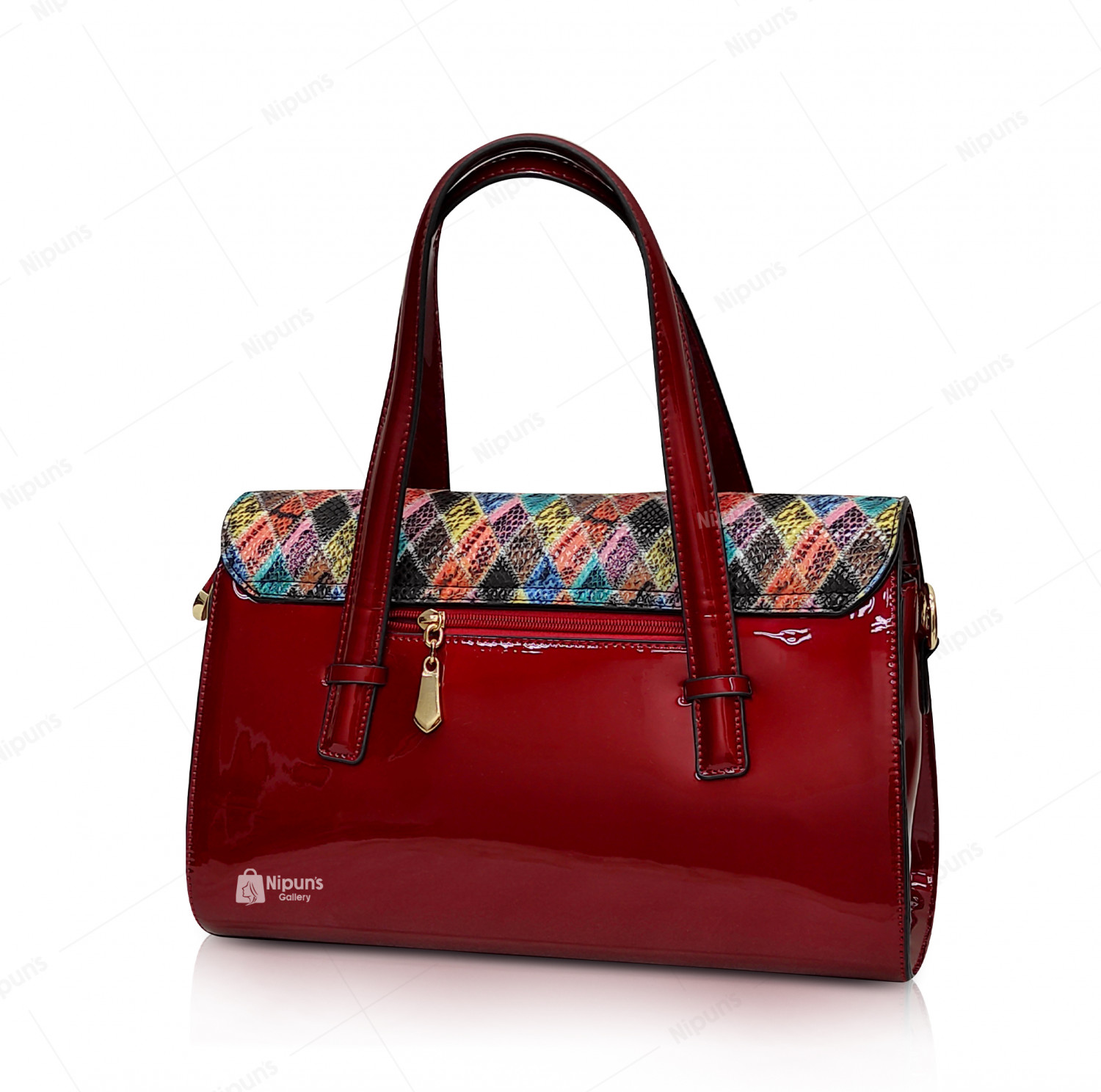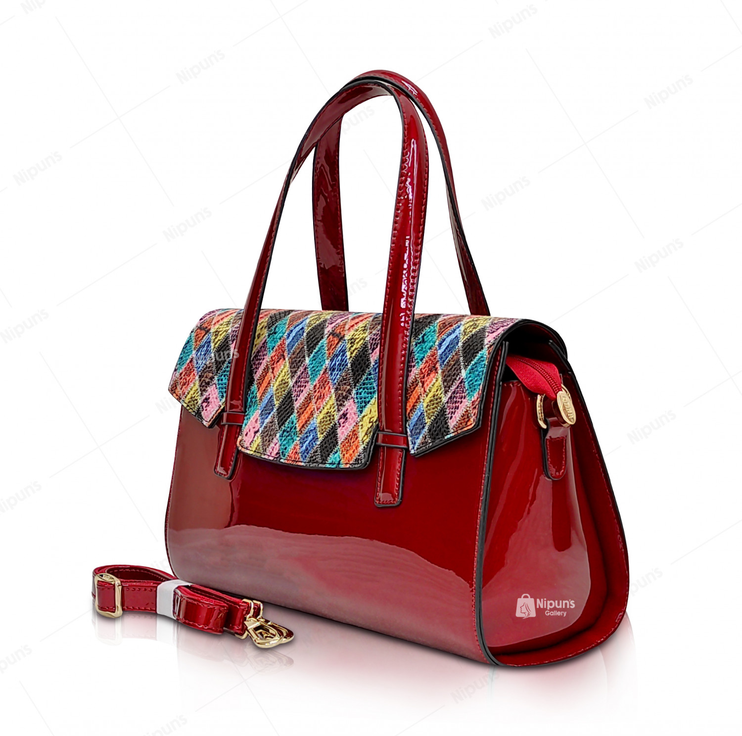 QDER RED Multi PATTENT LEATHER BAG